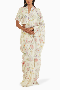 Note: The Saree is paired here with the Amore Ivory Mulberry Silk Blouse (can be purchased separately).
