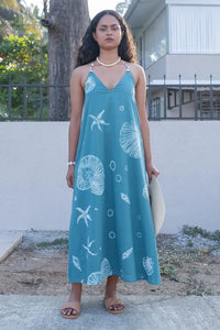 A breezy blend of elegance and island charm, this halter dress features a flattering neckline and a flowy silhouette that moves with you. Your go-to for beachside brunches or sunset strolls.