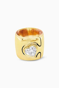 The Heart of Gold Statement Ring is a true showstopper, with its bold, wide band and a dazzling heart-shaped moissanite nestled in the centre and surrounded by a line black enamel. Crafted from vermeil gold, this ring radiates both charm and sophistication. Perfect for making a heartfelt statement, it’s a piece that captures love, luxury, and timeless style.
