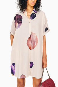Elevate your wardrobe with our floral printed shirt dress, crafted from soft cotton mul. It features a V neckline and convenient side seam pockets for a blend of style and practicality. For care, hand wash separately in cold water without soaking, or opt for dry cleaning to maintain its beautiful print and fabric.