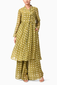 Elevate your everyday style with this hand block printed tie-up tunic paired with matching printed pants. Crafted in soft chanderi for all-day comfort and charm.