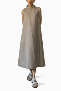 Crafted in a muted rose-pink hue, this sleeveless dress features a high collar that elegantly folds around the neck. It's shaped with relaxed shoulders, square armhole and side panels for a voluminous silhouette. Complement this floaty piece with heeled sandals.