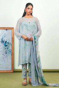 Featuring the Holly Chiffon Phiran Set by Sage Saga's Valley of the Night collection. This dreamy silhouette includes a chiffon phiran with delicate embroidery, matched with crepe embroidered pants and a chiffon dupatta for a graceful finish.
