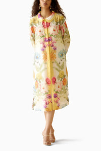 The beauty of the wild traverses to the colourful surrounds that combines the nuances of the urban capes with the innate nature of the jungle that protects the life forms within, both of which come alive on this elegant shirt dress that brings the subtle contrasts of the two worlds together.