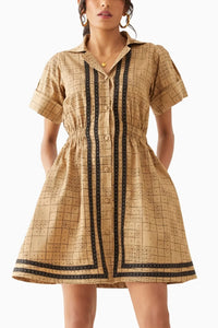 The Hope Dress combines bold Domino and Lanes prints in a fresh, short silhouette. Designed with softly puffed sleeves and an elasticated waist, it offers both comfort and a flattering fit. The cut-and-sew piping detail adds a refined, tailored touch that elevates the playful design. Perfect for effortless style with a modern twist.