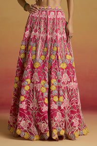 Featuring Hot Pink Contrast Threadwork Lehenga by Chandrima’s Amaryllis FW25 Collection. A vibrant hot pink silk organza lehenga featuring exquisite contrast threadwork and bead detailing, creating a bold, festive ensemble that celebrates artisanal craftsmanship and modern design.