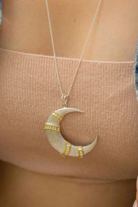 Unleash your radiance with the Huge Crescent Medallion by UNCUT. A masterpiece in silver, gold & uncut diamonds. Statement elegance, forever treasured.