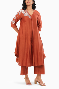 Fabric- Chanderi Silk Color- Rust Details- ThreadWork Fit- Regular Fit Components- 2 Product Code- SVEORIGWF-24-5CO