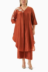 Fabric- Chanderi Silk Color- Rust Details- ThreadWork Fit- Regular Fit Components- 2 Product Code- SVEORIGWF-24-5CO