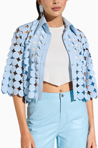 Featuring a laser cut box fit shirt, tailored in all weather crepe fabric.