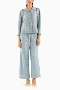 Featuring Ice Blue Overlap Shirt by Twenty Nine India from Nisha Collection. Crafted from silk raidaana bandhani, it adorns elegant collars and a distinctive overlap design, offering a blend of traditional charm and contemporary sophistication. Perfect for a polished, standout look.