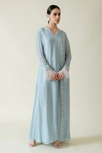 Command attention with this elegant Ice Blue Viscose Georgette Mat Sequins Work Jalabiya. Designed to blend modern style with traditional craftsmanship, it offers both grace and comfort for any occasion.