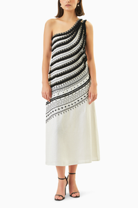 Mirrors, fringe elements and an off-shoulder top are just some of the pretty details of the Ida Dress. Made in pure linen, this is luxe dress that offers immense comfort.