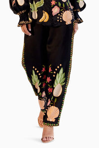 Introducing the Ilia Shirt and Pants Set that brings effortless sophistication with a touch of playful charm. Crafted from luxurious modal satin, this coordinated set features intricate placement printing in the elegant Seashell (Black) design, offering a refined, statement look. The shirt is detailed with a pleated collar and delicate ruffled sleeves, adding texture and femininity to the silhouette. Thoughtfully designed, the button loops are crafted from durable anchor thread, blending craftsmanship with style.