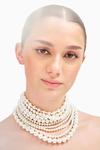 The Imperial White Pearl Necklace is a striking piece that radiates timeless elegance. Featuring a string of lustrous, high-quality white pearls, this necklace exudes royal sophistication. Each pearl is carefully selected for its smooth, radiant sheen, creating a graceful and polished look.