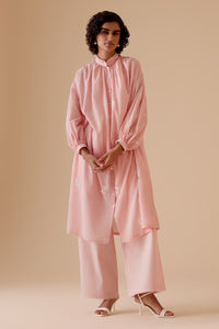 Delicate elegance meets a comfortable silhouette. Our Ina Kurta features floral embroidery that is accebtuated with hand-beaded pearls and sequins. Paired with wide leg pants for a complete look.