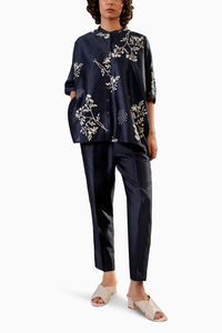 Indigo Disharge Print Kaftan Top and Straight Pant