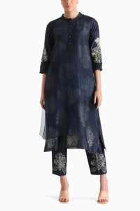 Indigo Double Layer Printed Tunic and Pant