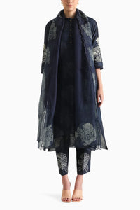 Indigo Double Layer Printed Tunic and Pant with Dupatta