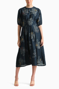 Discover timeless elegance with our Indigo Box Pleat Printed Dress, crafted from luxurious silk chanderi. This stunning piece features handblock prints and delicate hand embroidery, creating a beautiful contrast against the rich indigo hue. The box pleats add a flattering silhouette, making it perfect for any occasion.