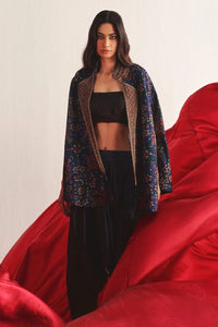 The Indigo Harem Dhoti Pants with Marodiwork from the Rangrez collection by 29 India are a stylish and elegant addition to any wardrobe. Rendered in a stunning blue hue, these pants feature exquisite Marodiwork embroidery and are crafted from luxurious Satin. Designed to exude grace and sophistication, these harem dhoti pants offer a perfect balance of traditional craftsmanship and contemporary flair.