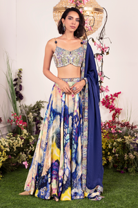 Indigo Ink Lehenga with Embellished Corset and Dupatta