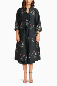 This Indigo V-Neck Printed Dress combines vibrant prints with a flattering silhouette for a chic and contemporary look. Paired with a Printed Quilted Jacket featuring intricate hand embroidery details, this ensemble offers a perfect balance of style and warmth. Ideal for both casual and semi-formal occasions, it exudes elegance and modern sophistication.