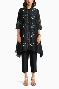 Indigo Silk Chanderi Embroidered Shirt and Pant