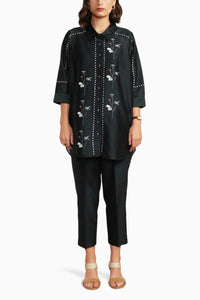 Indigo Silk Chanderi Embroidered Shirt with Straight Pant