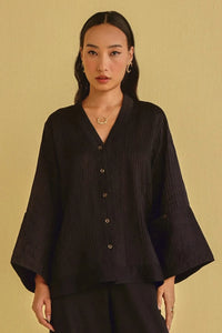 Featuring the Indigo Turnover Sleeves Pintuck Jacket by 29 India's Sunehri collection. Crafted from organic cotton, this V-neck tie-up jacket features delicate pintuck detailing and A-line turnover sleeves, expertly handcrafted for a refined silhouette with effortless, modern elegance.