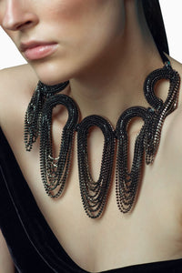 The Infinity Fall Necklace renders a unique look with these dangling studded crystals, also available in Charcoal Black & Sparkling White shades. The two-way necklace cum choker enumerates the dazzling and chic look that you must adorn for your every festive as well as a celebratory occasion!