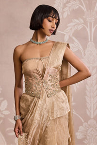Make a statement with the Iris Corset Belt, featuring all-over embroidery on delicate tissue fabric. This structured accessory sculpts your waist while adding intricate artisanal detail- perfect for elevating traditional kurtas or contemporary outfits with a bold, fashion-forward edge.
