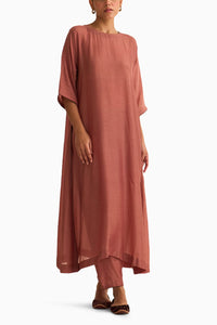 A 100% Cotton silk Kaftan Kurta Set .It Comes Along With Straight Silk Pants with a contrast piping.