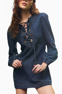 Featuring the Isla Dress by Kay Kay: a stunning piece crafted from woven Twill Denim in a timeless indigo hue. With its slim fit design, this dress effortlessly combines comfort and sophistication, making it a must-have for any occasion.
