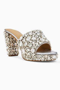 The It Girl perfect platforms are crafted in opulent shimmery silver fabric and adorned with a juxtaposition of silver stones in various shapes and sizes. This pair puts up a show that’s hard to forget for days to come. The sparkle stays, and the wearer slays!