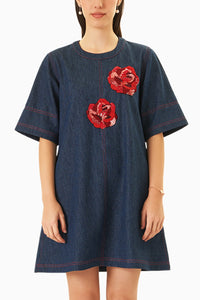 This spring , eleva te your denim ga me with the rela xed fit Iva na Dress . Highlighted with bea utiful ha nd embellished bea ded roses in hues of rouge , this dress ca n be dressed up or down - ma king it so ea sy to wea r ! Miri Style tip - for a da y look pa ir the Ivia na dress with snea kers a nd for a sexy night vibe, pa ir it with your fa vorite heels &a mp; clutch.