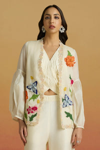 Ivory 3D Floral Applique Flared Amaryllis Jacket