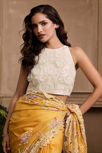 This ivory Chanderi top is beautifully adorned with 3D rose appliqué, adding a touch of texture and sophistication. The delicate, soft fabric serves as the perfect canvas for the dimensional rose details, which bring depth and a modern twist to the design. The intricate appliqué work enhances the timeless ivory hue, making it an ideal piece for both casual and semi-formal occasions. Light and airy, this top exudes elegance and charm, offering a perfect blend of contemporary style and traditional craftsmanship.