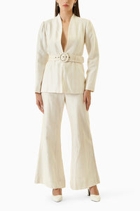 Featuring a detachable buckled belt fitted blazer with an inverted lapel collar, long sleeves with shoulder pads. Made in embroidered slub silk fabric.