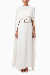 The Alaia Draped Overlay Gown brings a sense of quiet drama to evening dressing. Cut to a fluid, floor-length silhouette, it features an elegant shoulder drape that cascades seamlessly to the hem. The clean high neckline and minimal lines evoke a modern, sculptural simplicity.
