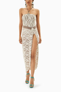 Acqua's Ivory and Brown Side Tie reveals clever balance of timelessness and modernity. Designed in lycra and lace fabric the one side tie is styled with an on-trend asymmetrical cut and a classic cut bottom that provides moderate coverage.