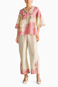 Ivory And Fuchsia Checkered Applique Co-ord Set