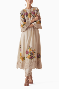 Ivory Applique Cutwork Kurta With Cutwork Pants