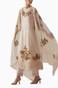 Ivory Applique Cutwork Kurta With Pants and Dupatta