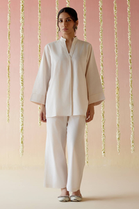 Introducing our Solid Embroidered Top and Pants ensemble, crafted from breathable and textured Khadi fabric for natural comfort. The top showcases exquisite embroidery that adds a touch of elegance while retaining the traditional charm of Khadi. Paired with Plain Khadi Pants, this set creates a perfectly coordinated look, blending classic style with a contemporary edge.