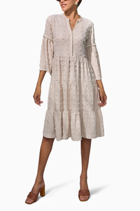 The timeless classic ivory dress will be your dress for every season. Features a collar neck with lace detailing. Style this dress with heels and accessories to make a statement.