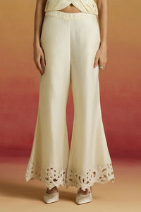 Featuring Ivory Cordwork and Beadwork Bell Bottoms by Chandrima’s Amaryllis FW25 Collection. Tailored in ivory chanderi, these bell-bottom pants feature exquisite cordwork and bead embellishments, blending traditional artistry with a sleek, modern silhouette for standout elegance.