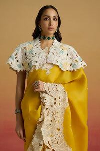 Featuring Ivory Cordwork and Beadwork Cape by Chandrima’s Amaryllis FW25 Collection. Crafted in ivory chanderi, this elegant cape showcases exquisite cordwork and bead detailing, adding a touch of artisanal luxury and modern grace to any ensemble.