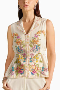 Featuring ivory chanderi cordwork and beadwork waistcoat .