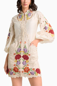 Featuring an Ivory chanderi cutwork, appliqué and beadwork cutout detail dress by Chandrima's Florens collection. A contemporary piece that combines sleek design with subtle allure.